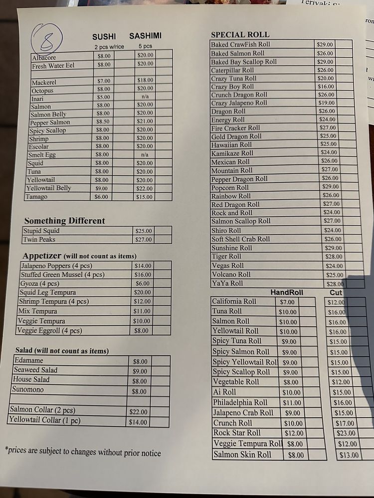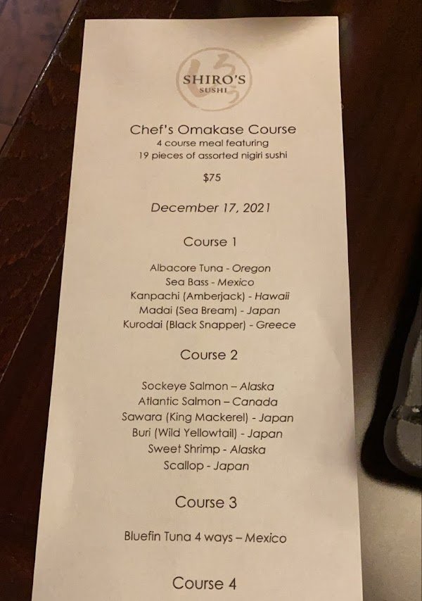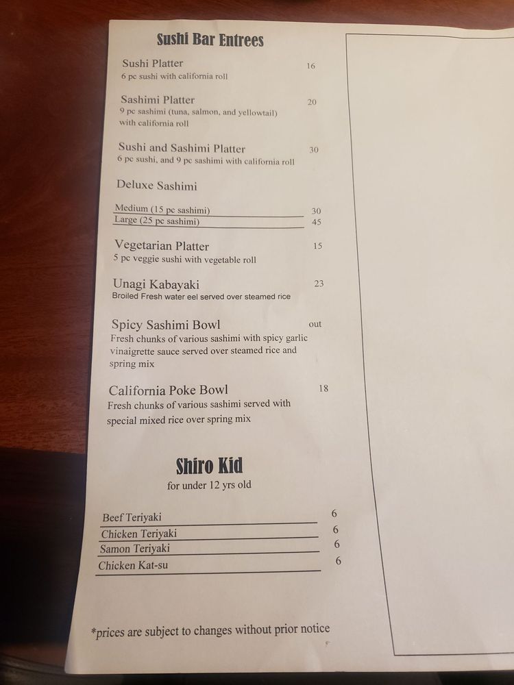 Sushi Shiro Menu (Update 2025)